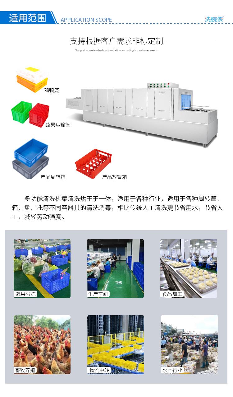产品详情:如今,塑料周转篮(也叫做塑料盒,塑料篮,塑料篮,物料篮,垃圾桶,托盘等)已普遍用以各个行业,其中以食品工业和机器组件工业为主要对象。清洁常常需大量的劳力,增加了生产成本。康熹洗筐机吸收了国内外先进设备的优势,并结合了许多新技术和新技术的开发和生产周转箱,可以完成篮子清洁的新颖设备,灭菌和干燥过程同时展开。多数用户的实际上使用验证,该设备对各种盒都有显著的清洁效用,大大提高了清洁效率,减低了清洁成本。受用户好评。